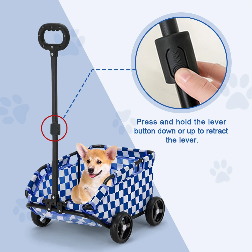Folding Travel Pet Cart 4 Wheels Rolling Cat Carrier Pet Carriage Lightweight Folding Trolley for Travelling Shopping Walking