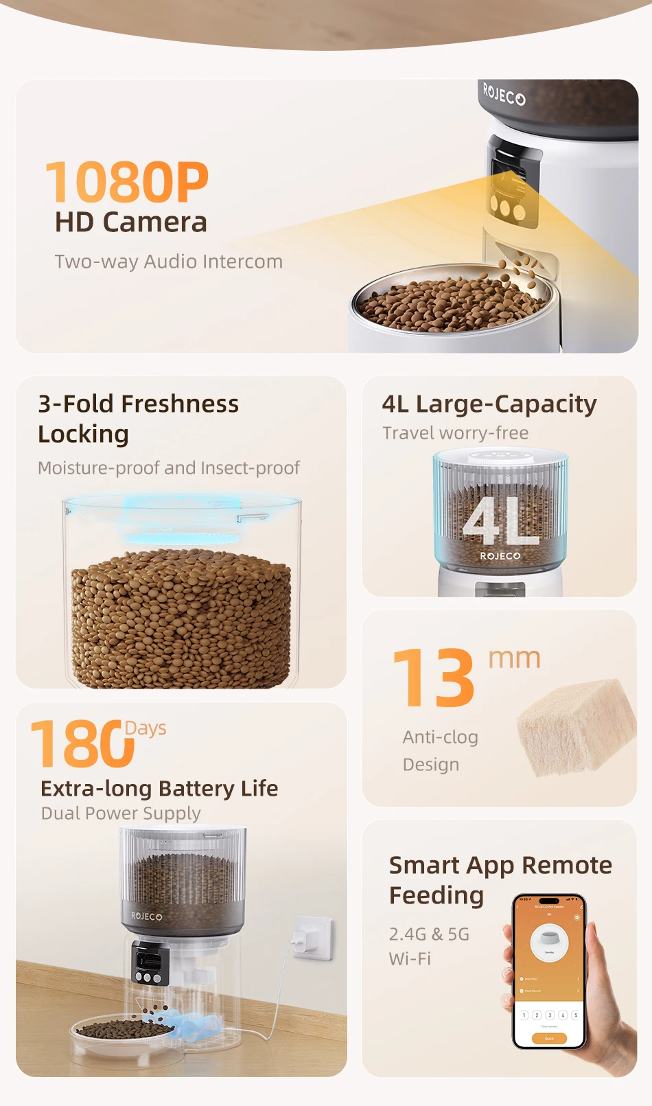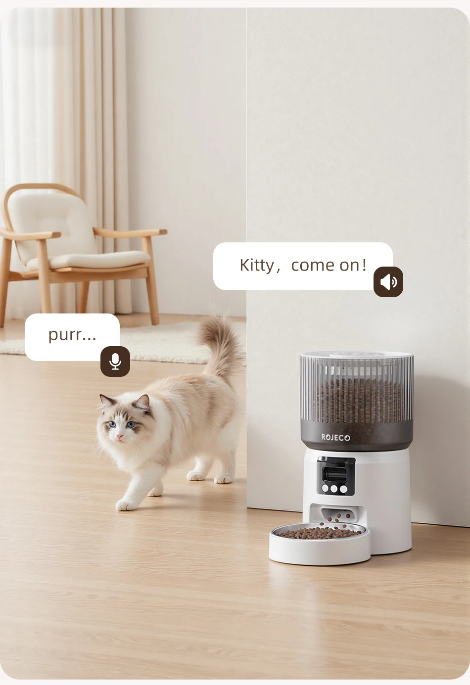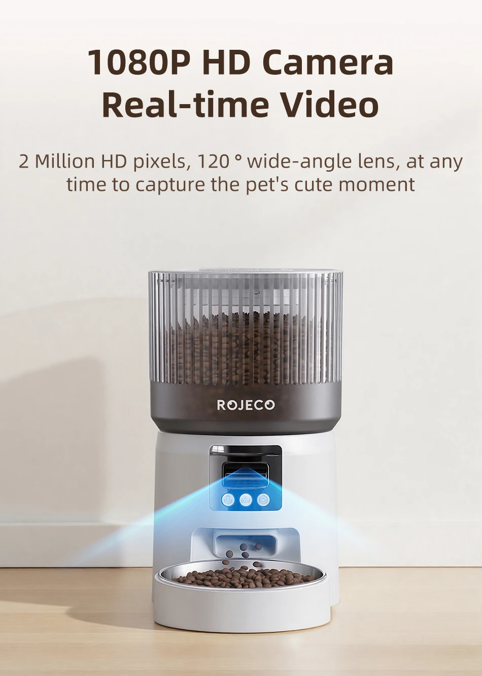 ROJECO Automatic Cat Feeder With 1080P HD Camera Video Smart Cat Food Dispenser WIFI Remote Control Auto Pet Feeder For Cat Dog